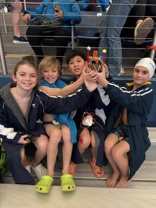 Audrey, Michaela, Blakely, Kylie, Kayden, Fritz, Elijah, Noah, Ethan, Ryan, and Franki were our Girl and Boy swimmers for our 11-12 Age Group at Winter SES!