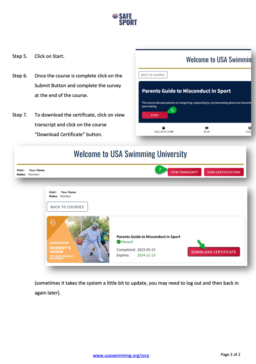 Attached are the instructions to complete the trainings. Additionally, here is the link to register for an online zoom seminar to complete the training: https://www.usaswimming.org/safe-sport/ssrp-training-resources