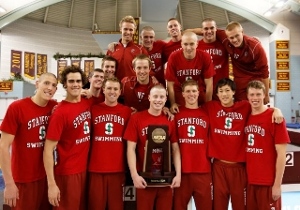 Curtis Lovelace assisted Stanford in taking the 3rd place trophy in this past weekend's NCAA Division 1 Men's Swimming and Diving Championships! Pictured is the Stanford team with their 3rd place trophy. They had the lead on the first day and did great with only 13 swimmers. Eighteen swimmers is the max number allowed per team. Curtis is 3rd from the left, front row in the picture. Curtis took 5th in the 100 breaststroke and 4th in the 200. He had a chance to win the 200…it was real close....