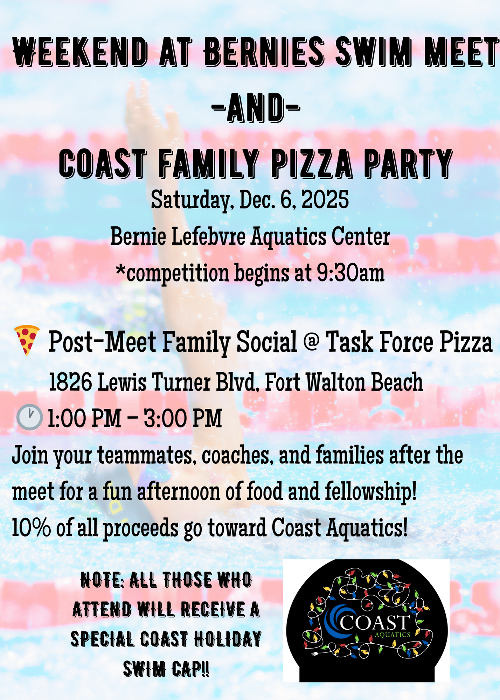 We hope everyone has a fantastic week, and we can’t wait to see you at the Bernie on Saturday for some fun and fast swimming.