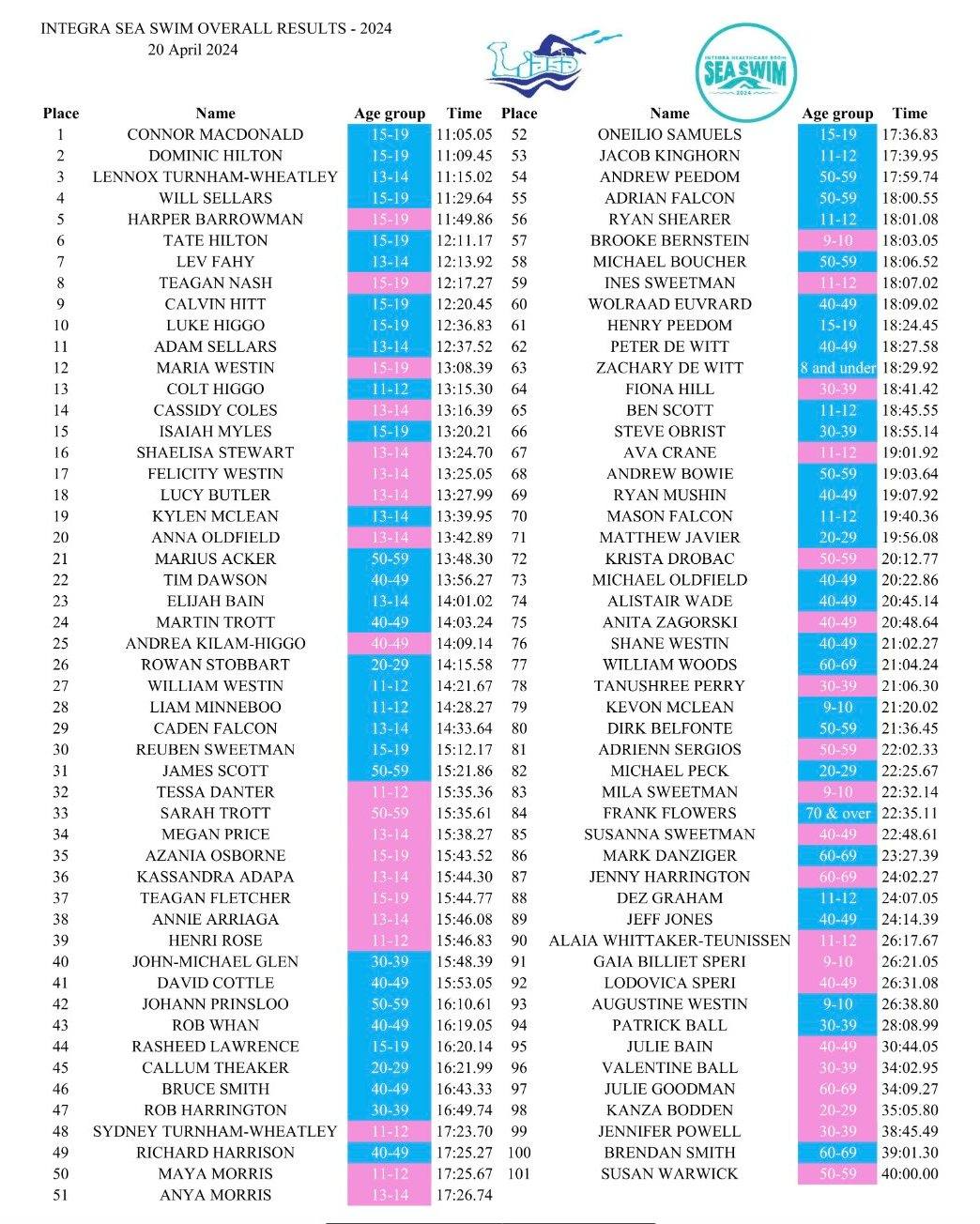 Sixtees Properties 800m/400m Sea Swim – May 24, 2025