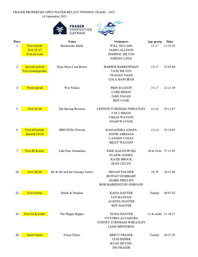 Fraser Properties Open Water Relays 800m - October 8, 2022