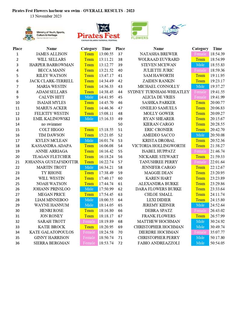Pirates Fest KPMG 44th Annual 5K Sea Swim - November 16, 2024
