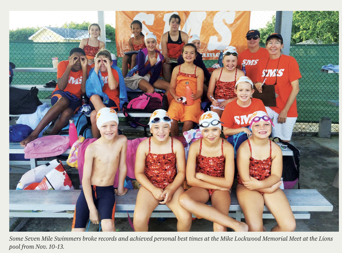Seven Mile Swimmers ages 7 to 12 took part in the Mike Lockwood Memorial Meet at the Lions pool from Nov. 10-13, when some swimmers broke records and achieved personal best times.