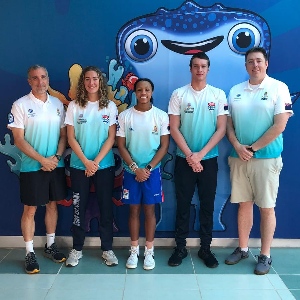 Our small but mighty team arrived safe and sound in Doha for the World Aquatics Championships. From left to right: Mike Barrowman- Team Manager, Harper Barrowman, Jillian Crooks, James Allison and Mathew Johnson- Coach. Good Luck to everyone!