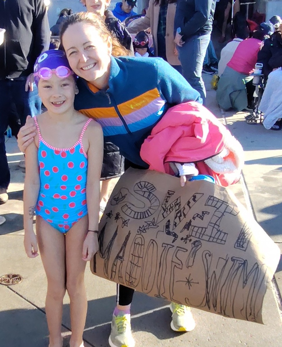 In the morning the older swimmers had it rough as the temp was really cold outside.
