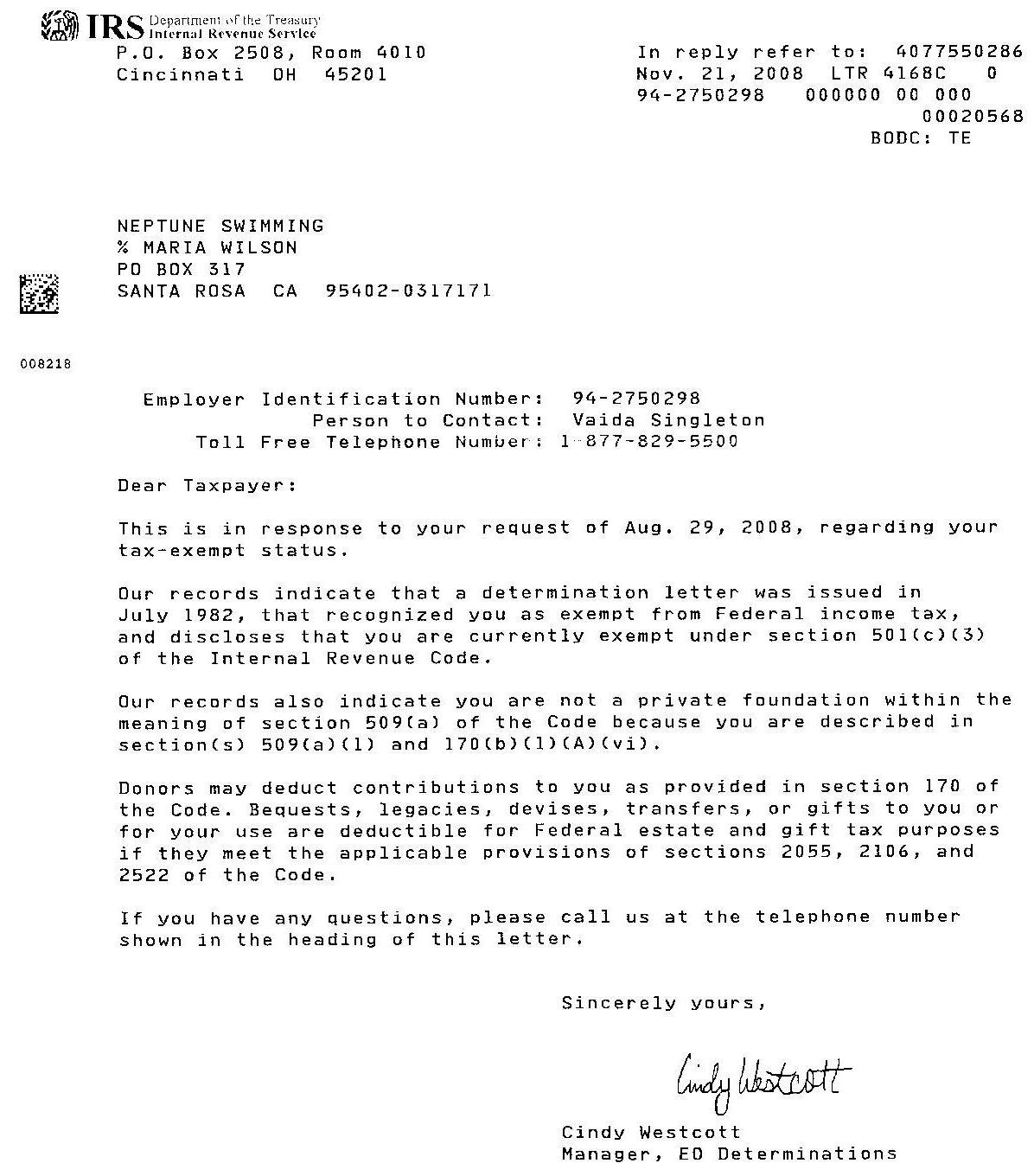 Non-Profit Letter