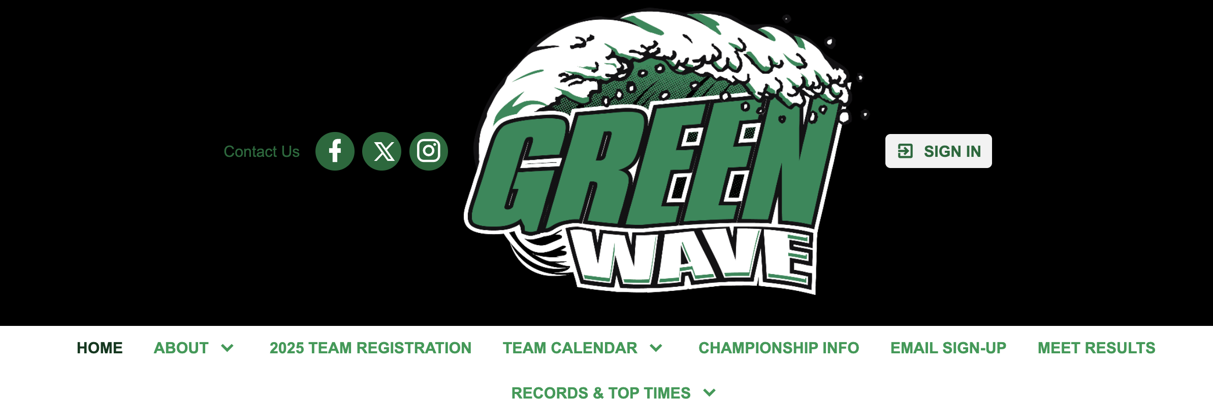 If you are interested in being added to our swim team email list you must create an account on our team website. Click the "Sign In" link next to the Green Wave logo.