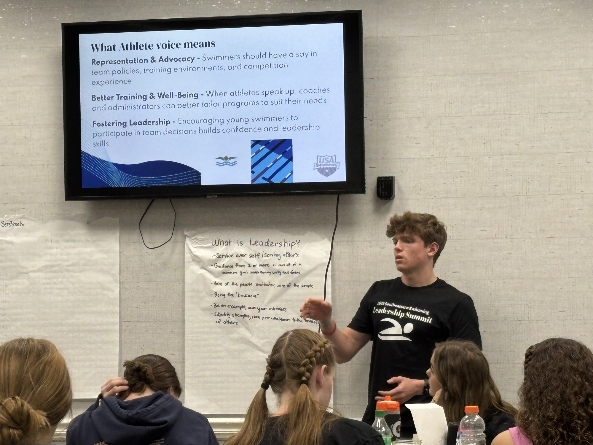 There are four Athlete Representative spots in the LSC- The Senior Rep, a Junior Rep and two representatives At Large. This year, our own Alexander White is one of the At Large representatives. Among their other duties is the responsibility to plan and host a leadership summit which they did over the weekend of April 4-6th. The summit drew 25 swimmers from teams all across the LSC and the programming and many of the presentations were all led by the athletes. Our own coaches, Benji and McKenna were there presenting and guiding many of the discussions.