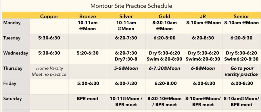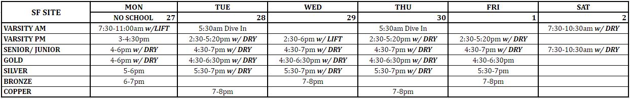 - Please make sure your swimmer is bringing their equipment (this includes their own goggles), water for hydration, and tennis shoes on dryland days.
