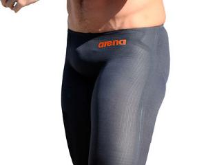 Here are two photos of the legal Arena swimsuit.  Notice the bright orange Arena logo.  This is the distinguishing mark of the legal and non-legal suit.  If the logo is white or any other color, the suit is not legal.