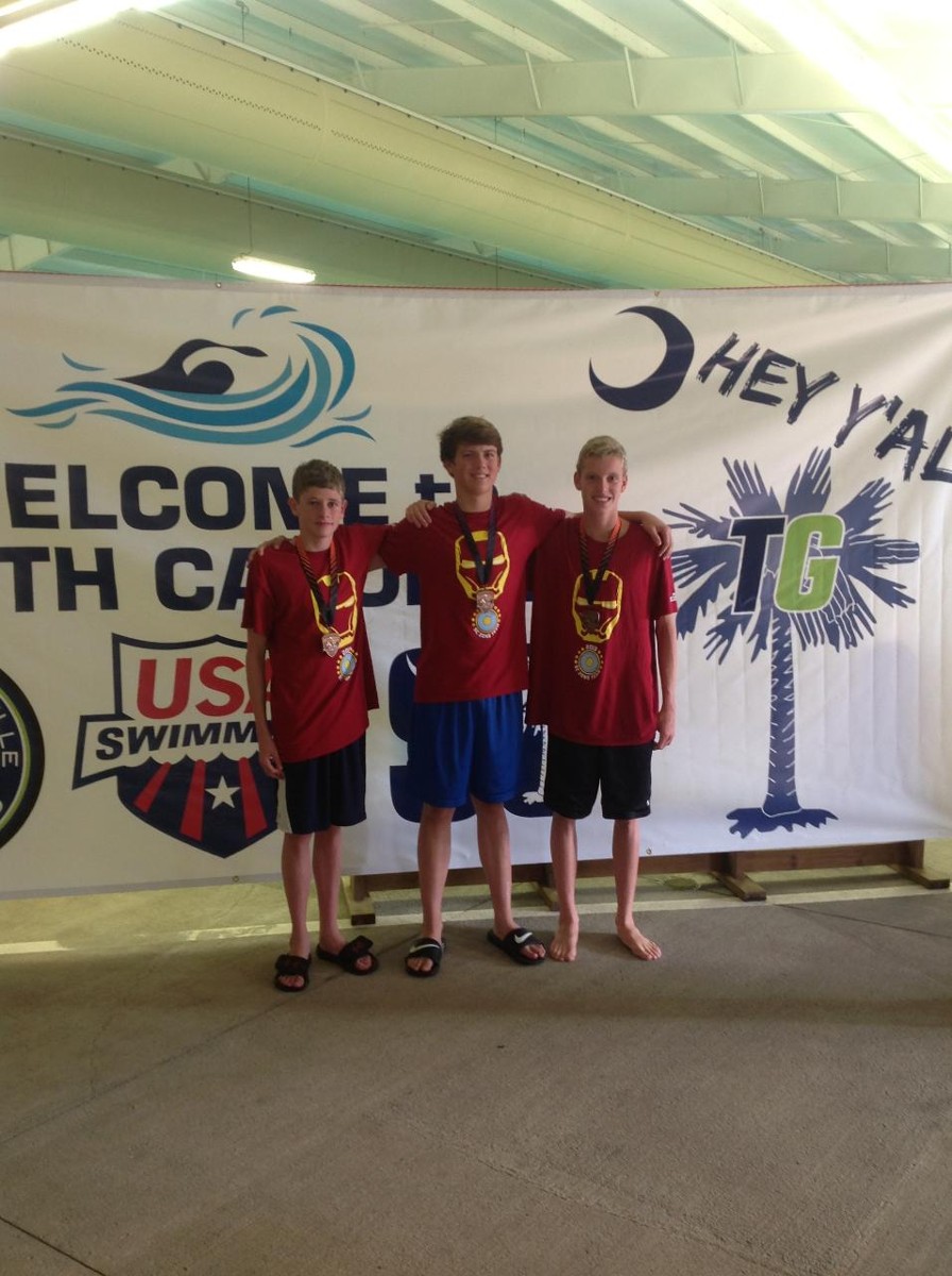 Greg Reed (13/14) 8th place, Jack Story (15-18) 7th place, John Evans (15-18) 8th place in the 1500m free!