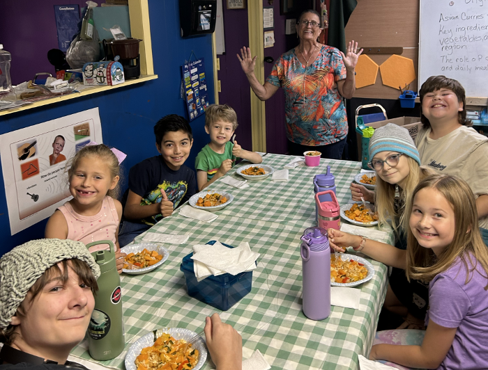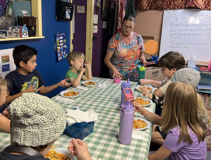 Thursday September 4: We started the morning learning about Curry and then Miss Anne taught everyone how to make Sweet potato curry with coconut rice. Then after eating we all went outside to play. Then we listened to chapters 10,11&12 in "I am Malala" and then talked about it. Then we played the dice game and then played a different game of going to the sign to finish the equation.