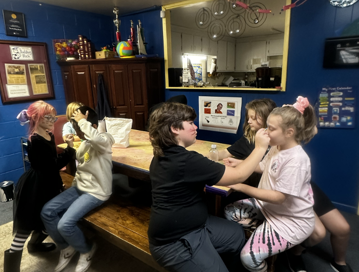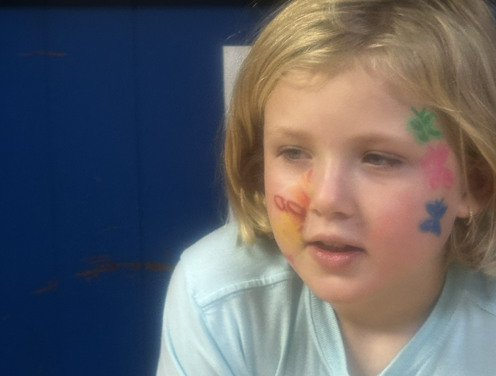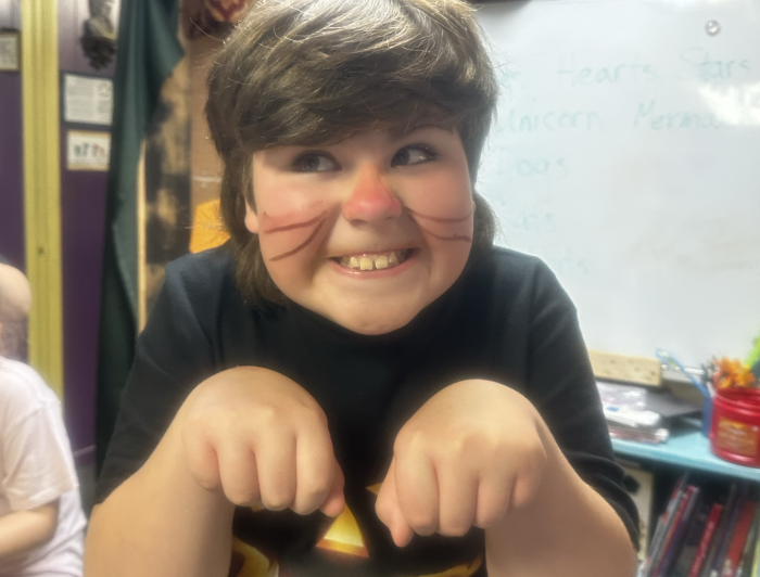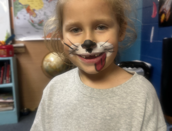 Today the whole school got together to celebrate. Everyone had spaghetti and meatballs. After lunch we painted faces and roasted marshmallows outside.