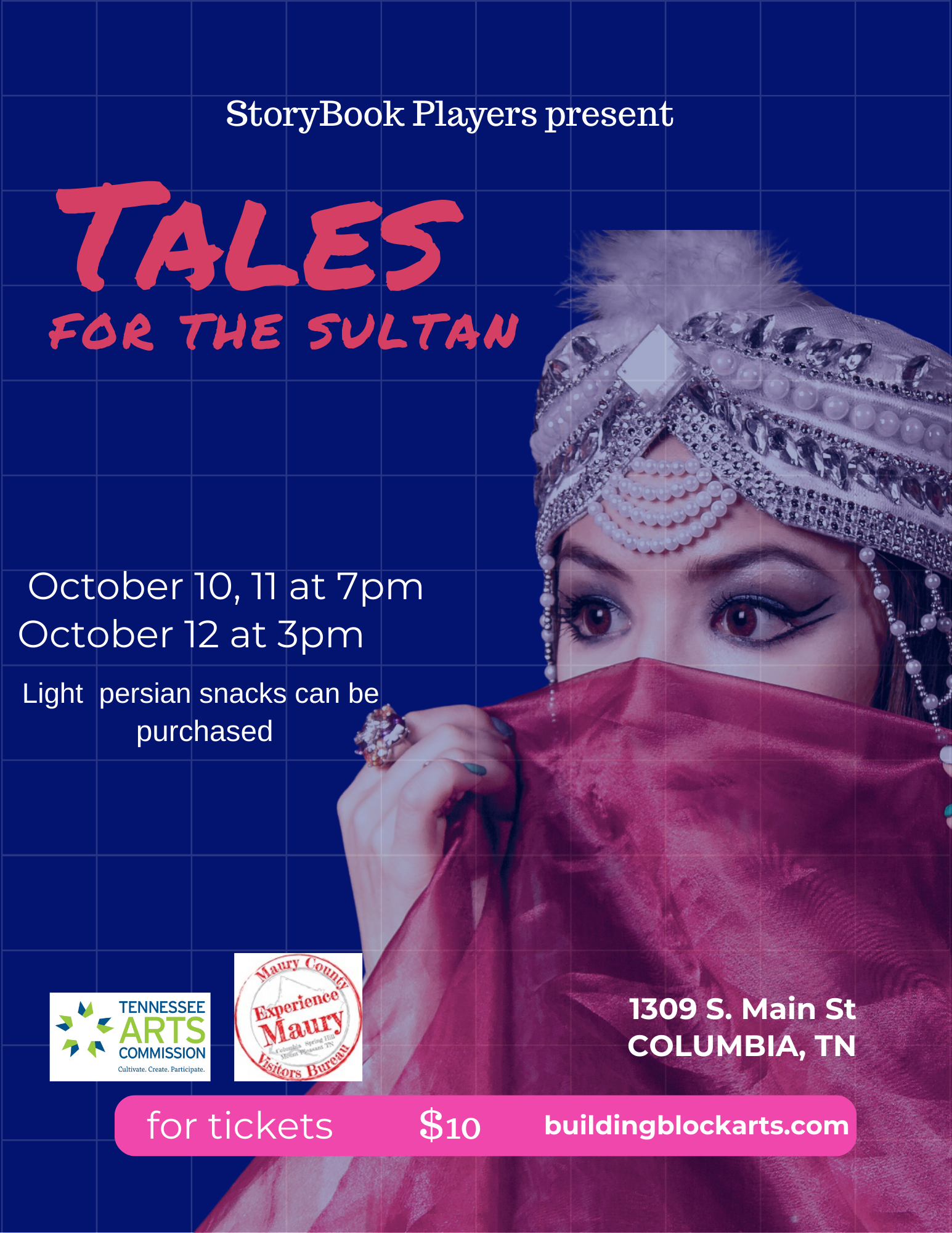 Tickets are available (and already selling!) at https://buildingblockarts.ludus.com Tales for the Sultan