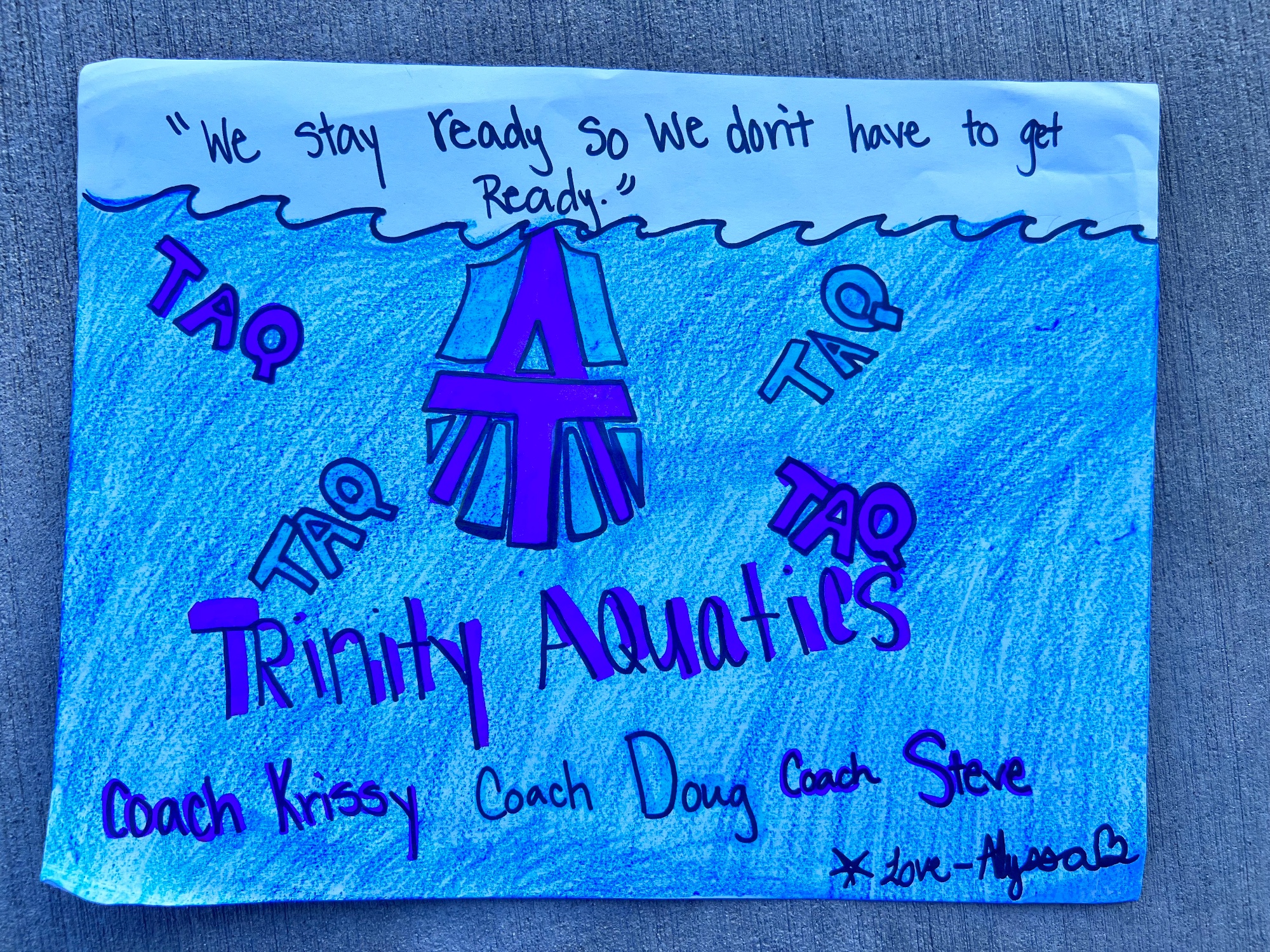 Trinity Aquatics is a family of swimmers committed to the personal relationship of mind, body, water. TAQ seeks daily competitive opportunities to discover, develop, and test their skills to create a positive change. Through the pursuit of healthy habits and participation in competitive athletics, TAQ swimmers embrace the level of commitment necessary to achieve their individual goal, and develop the awareness of the need to bring out the best in others. Each day is dedicated to leading others through their own example.