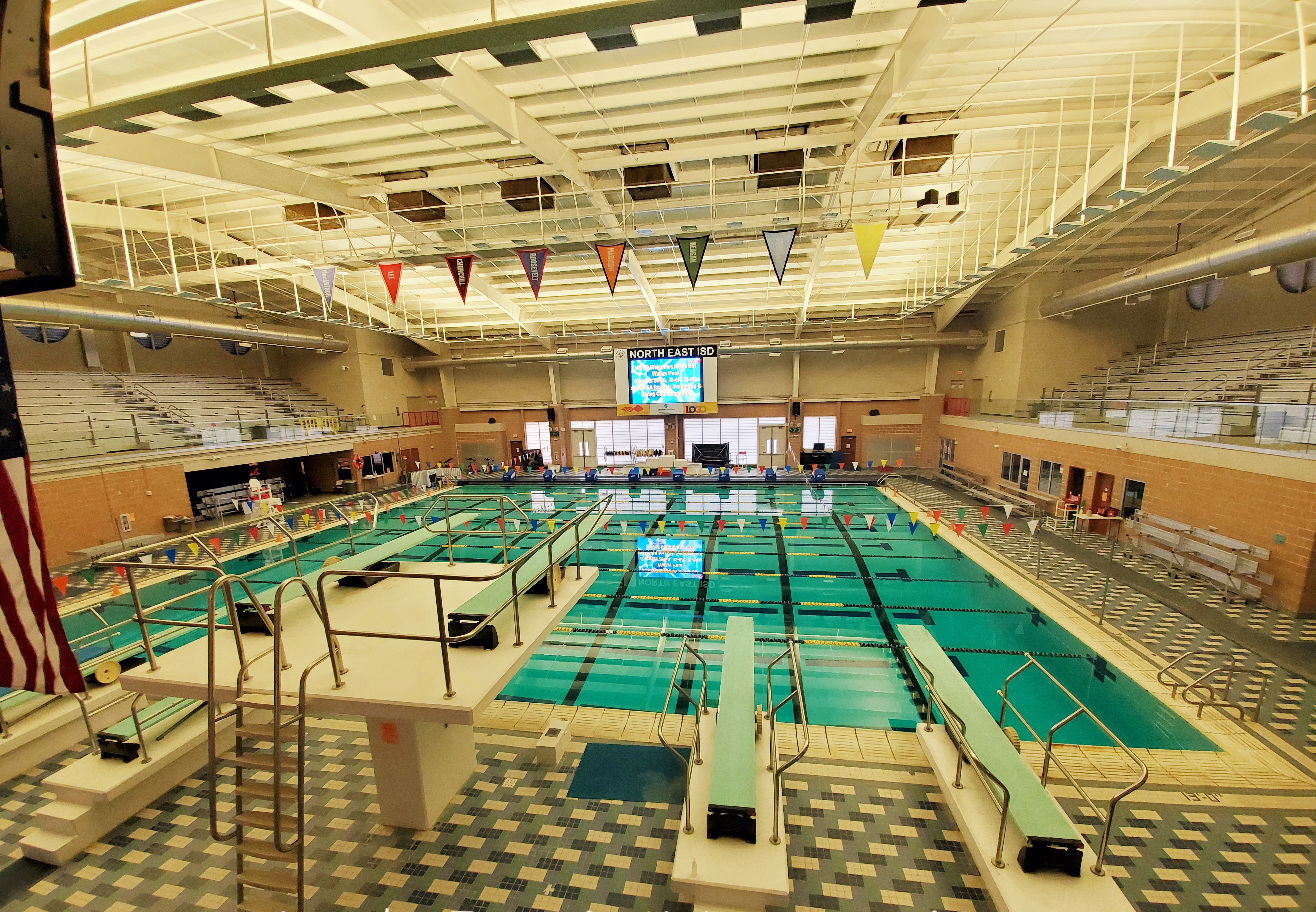 Renovated in September 2017 the NEISD Sports Park Pool boasts a heated outdoor pool with six 25 meter lanes and a step-in instructional area. The pool is primarily utilized by the NEISD High School Swim Teams and the North East Aquatic Club Team (AAAA-NE).