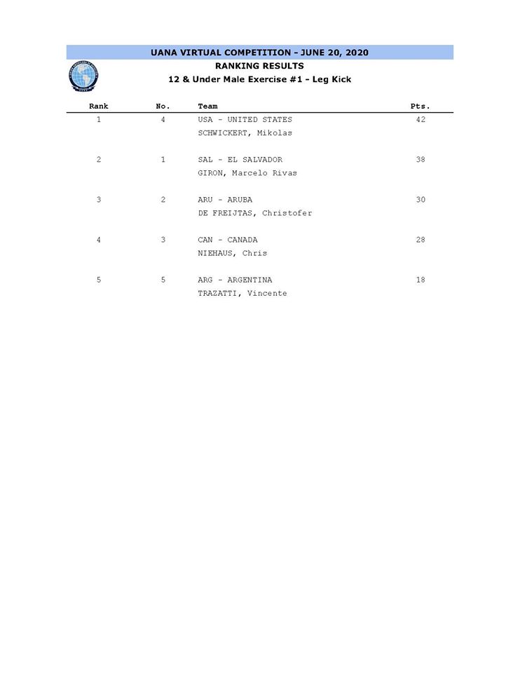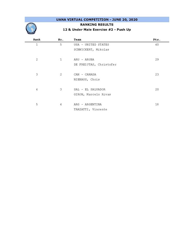 12&Under Male Leg Kick Results 12&Under Male Push Up Results