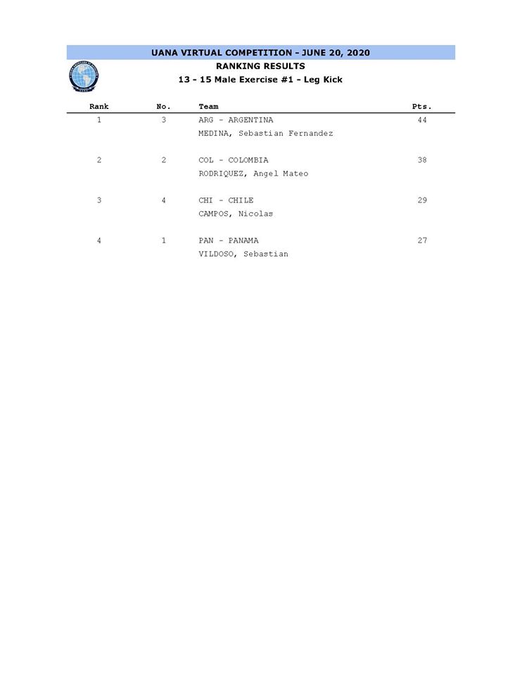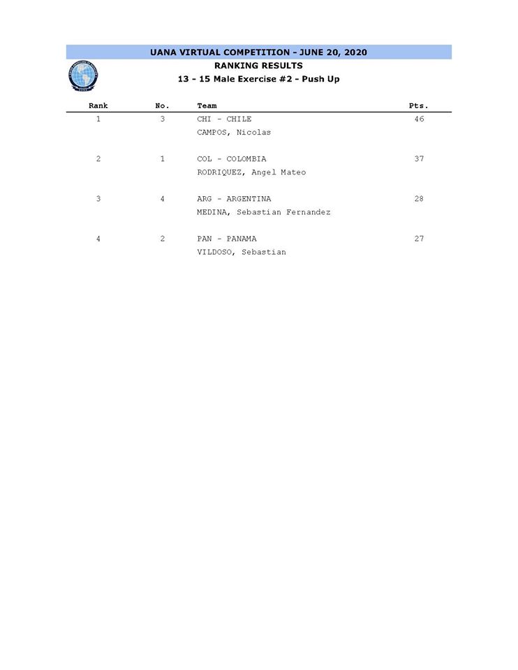 13-15 Male Leg Kick Results 13-15 Male Push Up Results