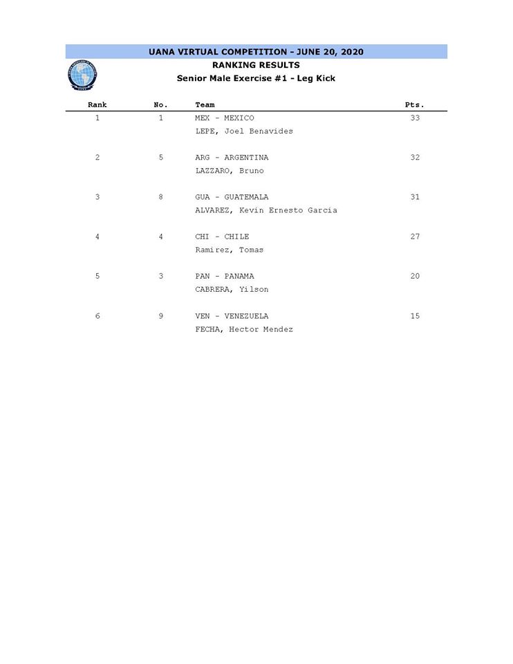 Senior Male Leg Kick Results Senior Male Push Up Results