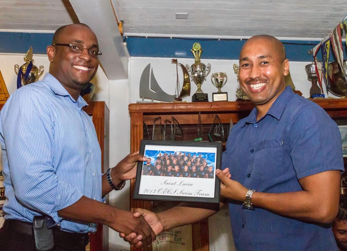 At the St Lucia Yacht Club venue, the Minister addressed a well attended occasion with many of St Lucia young competitive swimmers and their families and well wishers. In the relaxed atmosphere, he spoke of Swimmings many accomplishments over the years, the support of family and parents, efficiency and role of SLASA and of course the recent cabinet decision to construct the 50m pool at Beausejoir.
