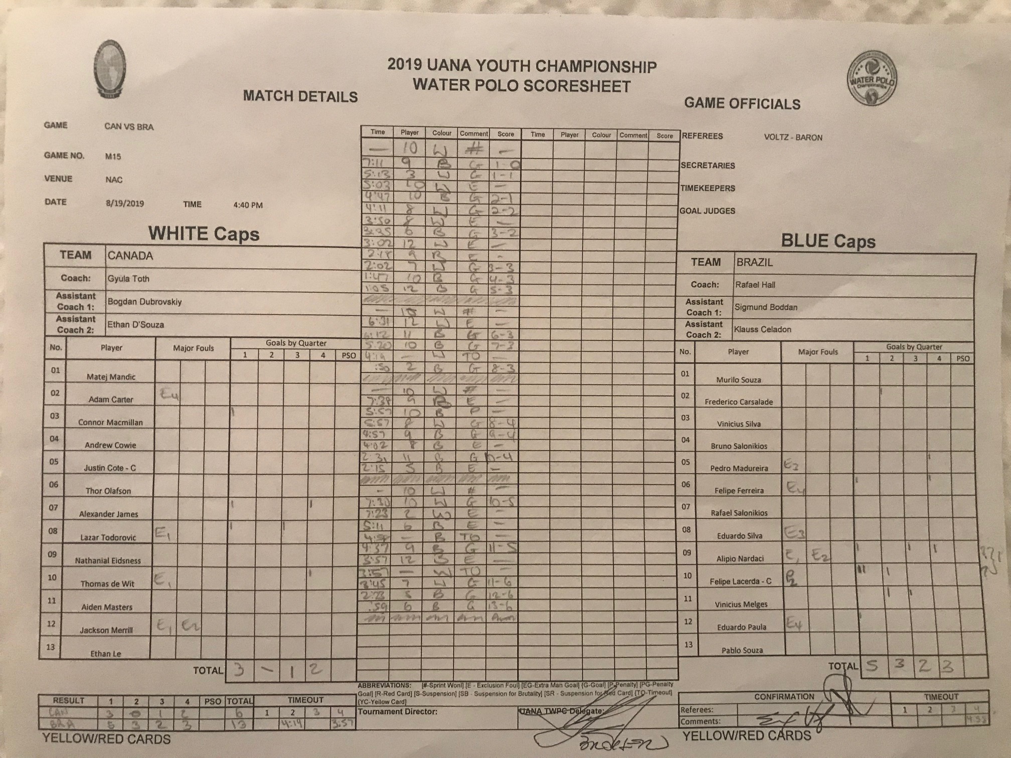 BRA defeats ARG and CAN gets by TTO to qualify for 2017 FINA WORLD CHAMPIONSHIPS and advance to the 2017 UANA CUP Gold Medal Game.