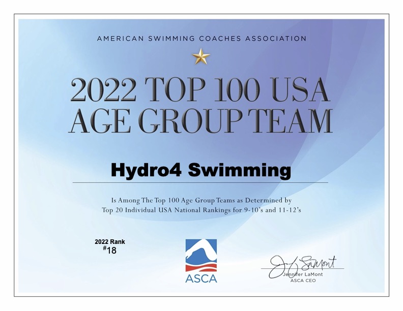 Hydro4 Swim Team offers training and practice groups for swimmers ages 5-18 years old. In addition, we have a Masters swim group.