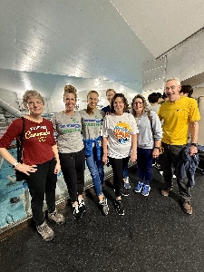 GWU Swim Team helped us in a big way in November by providing timers for our SCM meet at Germantown Indoor Swim Center. Last month a group of GERM and Ancient Mariner swimmers attended a GMU meet in DC. Cathy Gainor, Carole Valis, Dorota Hassett, Denise Dombay, Lisa Yaw, Amy Cooley and Tom Denes are pictured, left to right.