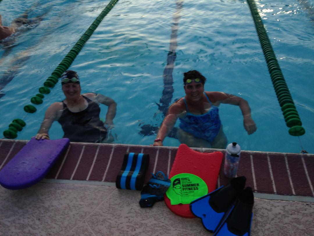 Below:  Fundraising for USMS Swimming Saves Lives Foundation through the Smarty Pants Vitamins Summer Fitness Challenge: Kim Peifley and Jennifer McVeigh