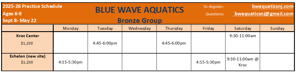 Group Description: Ages 6-9. Beginner to advanced swimmer who want to refine skills in all four competitive strokes. Swimm Schedule posted 8/4/23 er will compete in USA Swimming meets at their ability level.