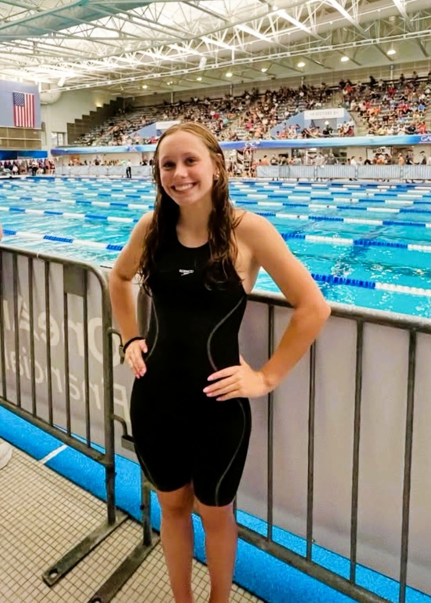 15-year-old, Kelsey Grayson, set a new team record in the 15-18 girls 200 m Butterfly at the 2025 USA Swimming Futures Championships held in Greensboro, North Carolina, July 23-26, 2025. Kelsey's time of 2:19.58 broke the previous record of 2:19.68 that was set in April 2012 by Morgan Karetnick.