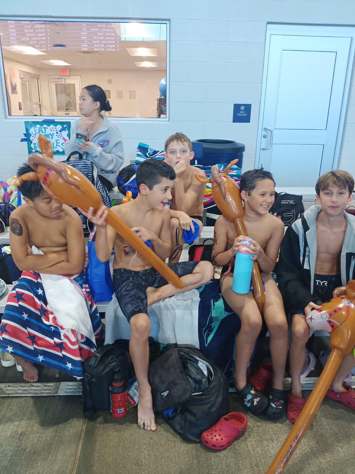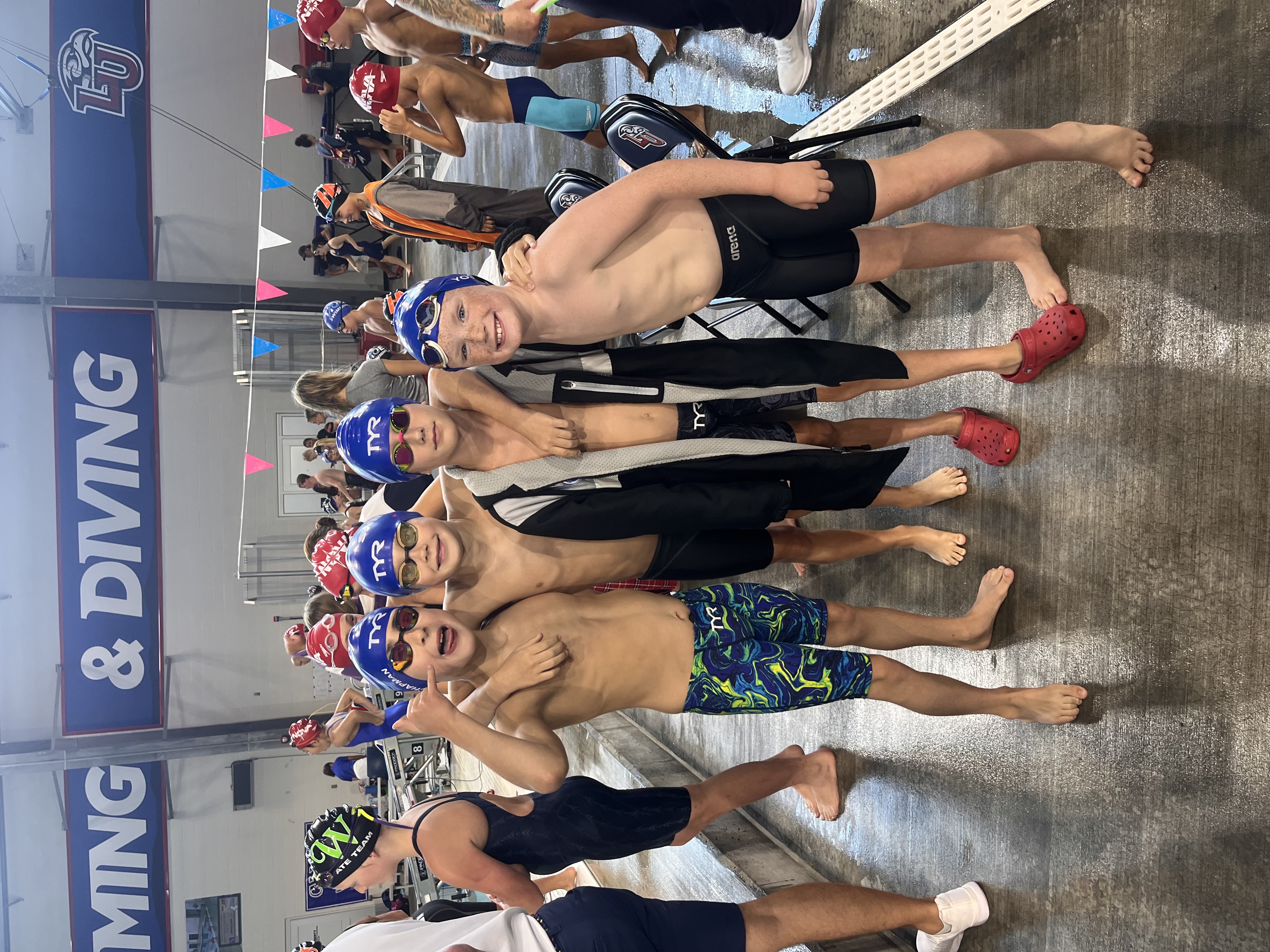 10 & Under Boys (400 Free Relay) Isaac Chapman, Lukas Bell, Brooks Nemeth, Nathan Cho (5:05.99)