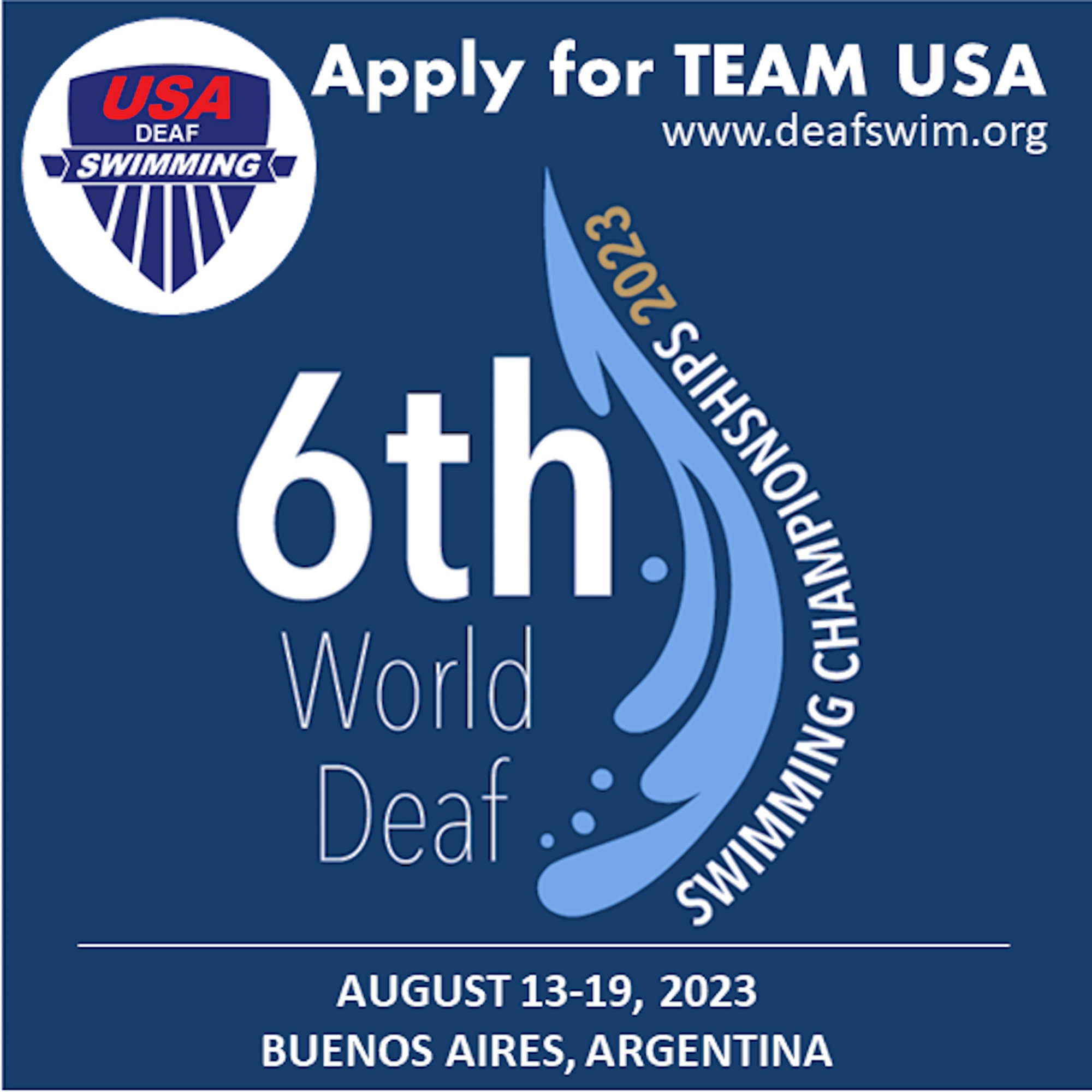 USA Deaf Swimming is forming Team USA to compete in the 2023 World Deaf Swimming Championships in Buenos Aires, Argentina in August 2023.