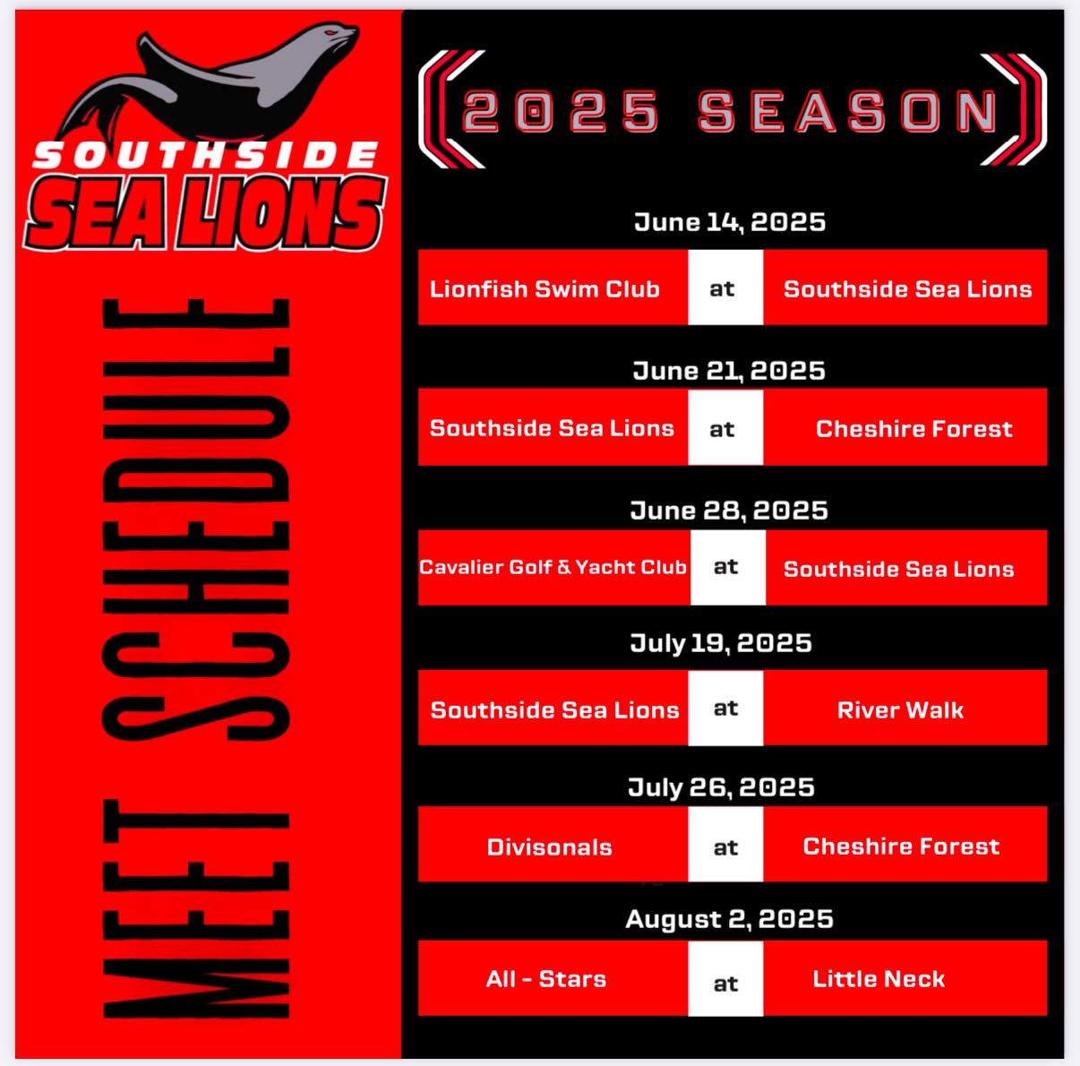 The SeaLions hosts practice at 5905 Portsmouth Blvd, Portsmouth, VA 23701. The practice and meet schedule for the season are provided below.