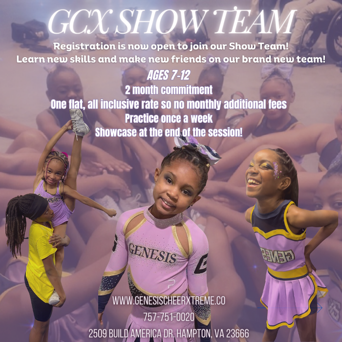 Our Show Team is here and we are so excited to offer a new way of cheerleading with less commitment, no traveling and no monthly fees! Get the same experiene at more than half the cost!