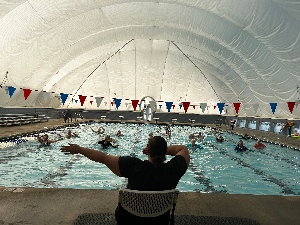 | Lenny has been teaching aquacise at the pool since the beginning. She teaches on Tuesdays and Thursdays at 11 am and Saturdays at 10am. |