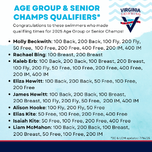 This week we wrap up our 2024-25 Season with our final three long course meets: Senior Champs (July 17 - July 20), Age Group...