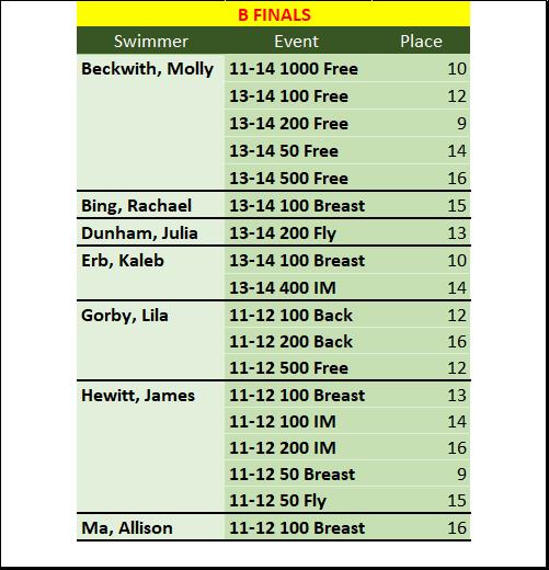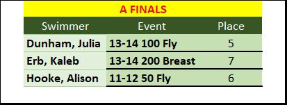 Hardware Recap: Our kids placed Top 16 in the State for 21 of the 41 events swam! We also had 3 swims in the Top 8 in the State. Here is a special shout out to all of those swims that made finals! Awesome Job -- Go Gators!