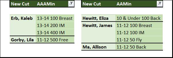 Of the 41 races, there were 27 best times (66%). There were several new AAA and AA time cuts achieved. Those swims and swimmers are called out below. Well done, everyone!