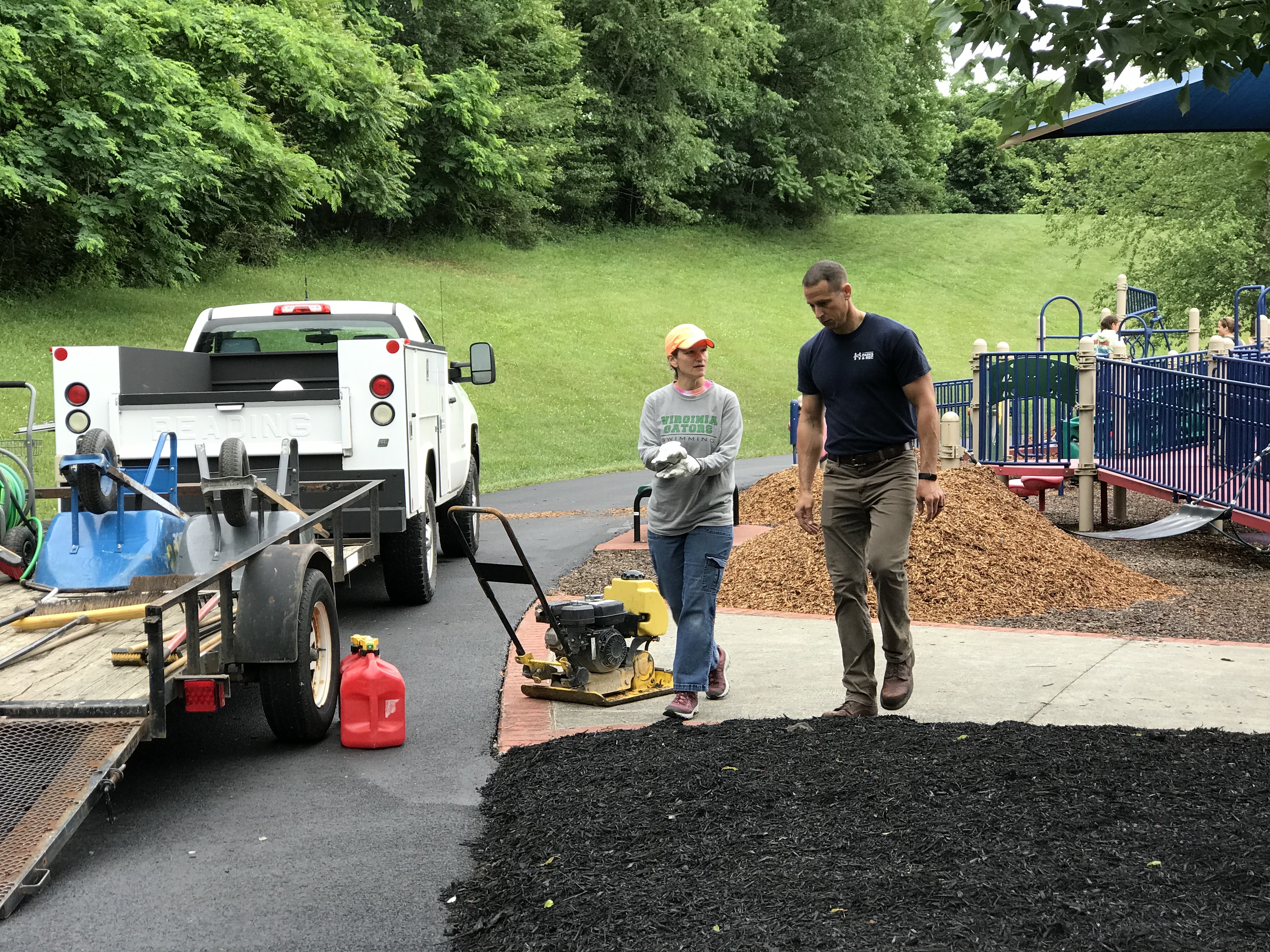 "We have to give a huge THANK YOU to the Virginia Gators of Harrisonburg Swim Team today. Over the course of the morning, more than 30 volunteers including swimmers, board members, and parents showed up and donated time to help prepare A Dream Come True Playground for its re-opening on Monday. Along with some Parks employees, they washed playground equipment, power washed sidewalks, playground equipment and benches, painted bridges and sidewalks, applied playground mulch, picked up trash and much more. The group has donated thousands of dollars worth of equipment to Westover Pool that ultimately ends up helping city residents and city athletes use, and compete at, Westover Pool. Thanks again to a youth group that volunteered time today to make the Friendly City just a little bit better than it was yesterday." [source]