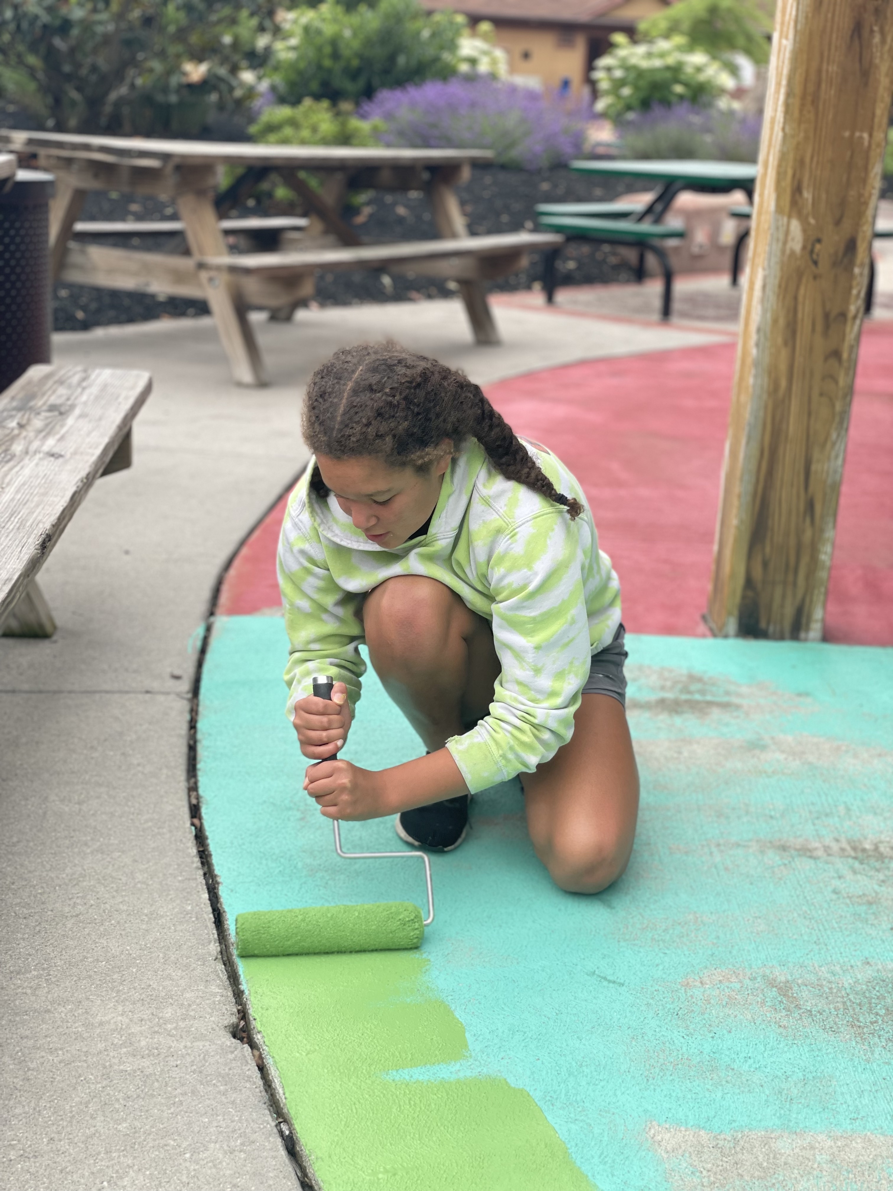 From Brian Mancini, Acting Director of Harrisonburg Parks and Rec: Sixteen of our swimmers (from ages 5 and up), along with parents spent several hours getting dirty and even a little paint-splotched and the results are now being enjoyed by children from our area.