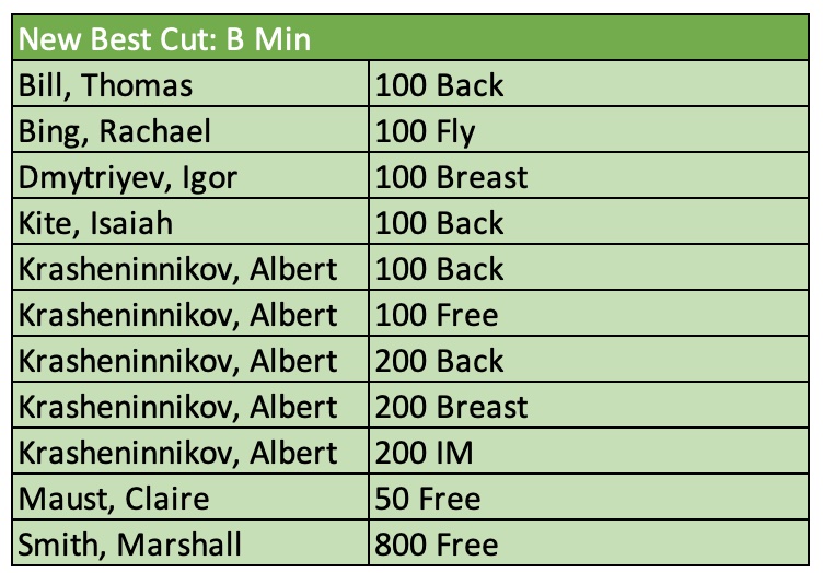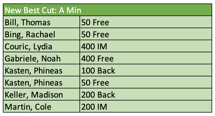 Congratulations to those who made new cuts for championship meets - a great wrap-up to our long course season!