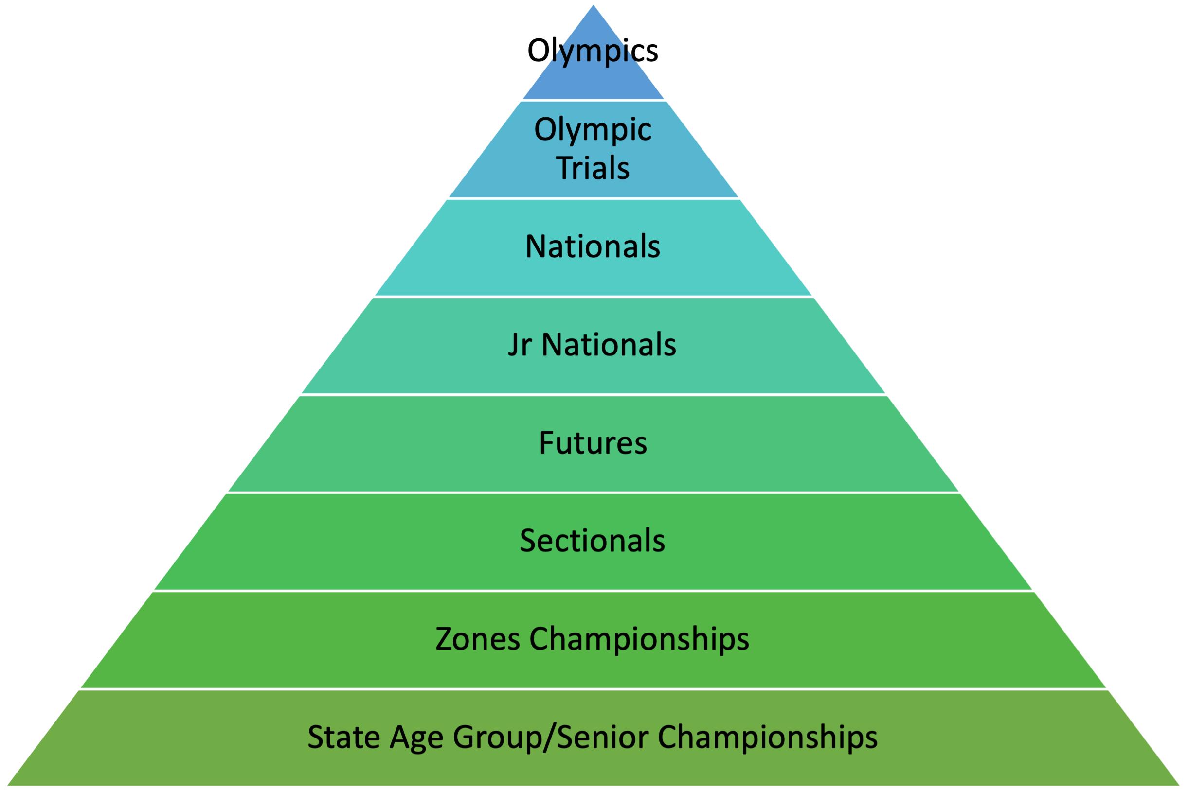 Beyond the B - AAAA motivational time standards, USA Swimming has a few additional time standards: Sectionals, Futures, and Junior Nationals, and Nationals. (There are more as well, but it can be a bit overwhelming!) The above graphic gives a visual summary of the progression of cuts that might help a little bit.