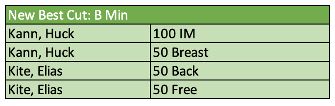 There were four new B motivational cuts achieved as well. Those swims and swimmers are called out below. Keep up the great work!