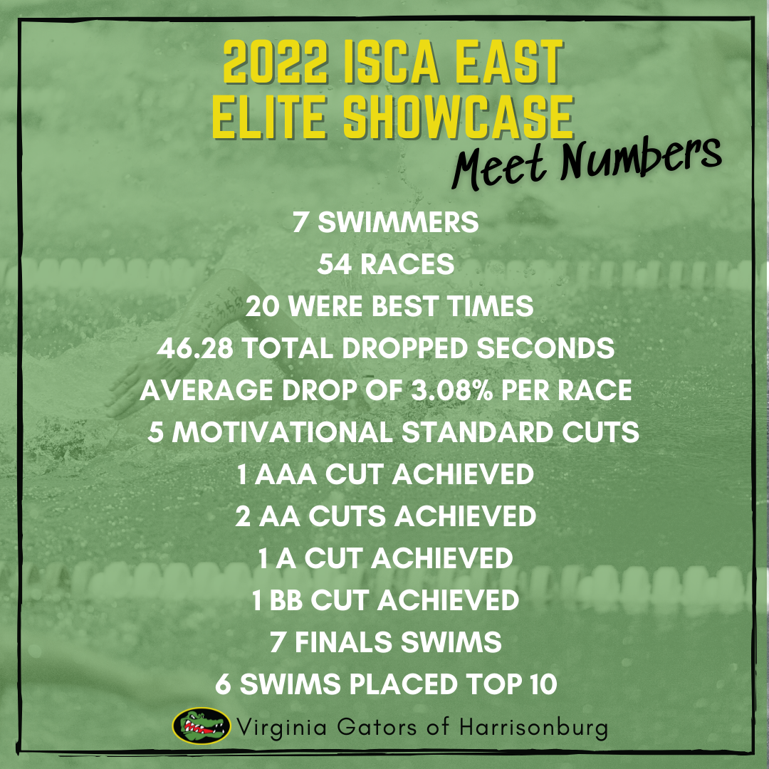 From April 13 - April 16, seven of our age group swimmers (ages 14/under) traveled to St. Petersburg, FL with a few Roanoke Gators to compete in the 2022 ISCA East Elite Showcase and wrap up their short course season.