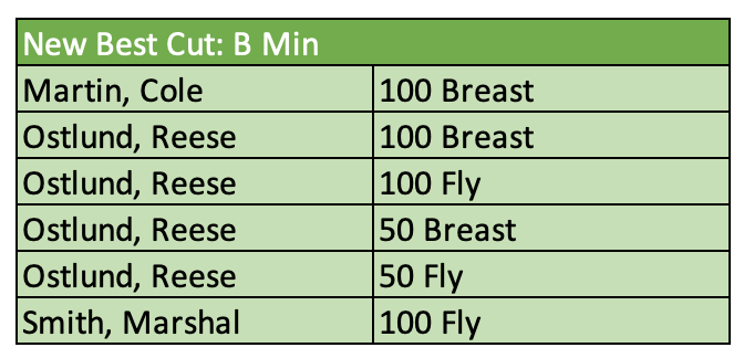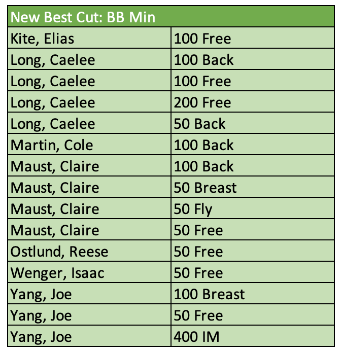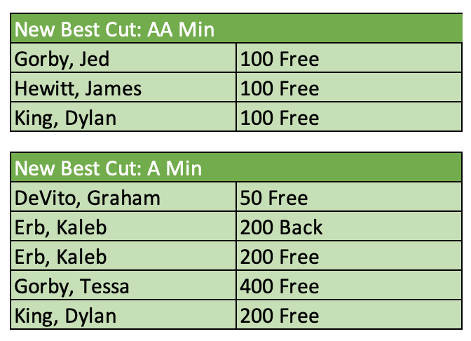 There were twenty-nine new motivational cuts achieved from B through AA. Those swims and swimmers are called out below. Great meet, everyone!! We hope you all had fun and were encouraged by your times over the course of the weekend and can't wait to see your progress over the remainder of the long course season. Keep up the good work!