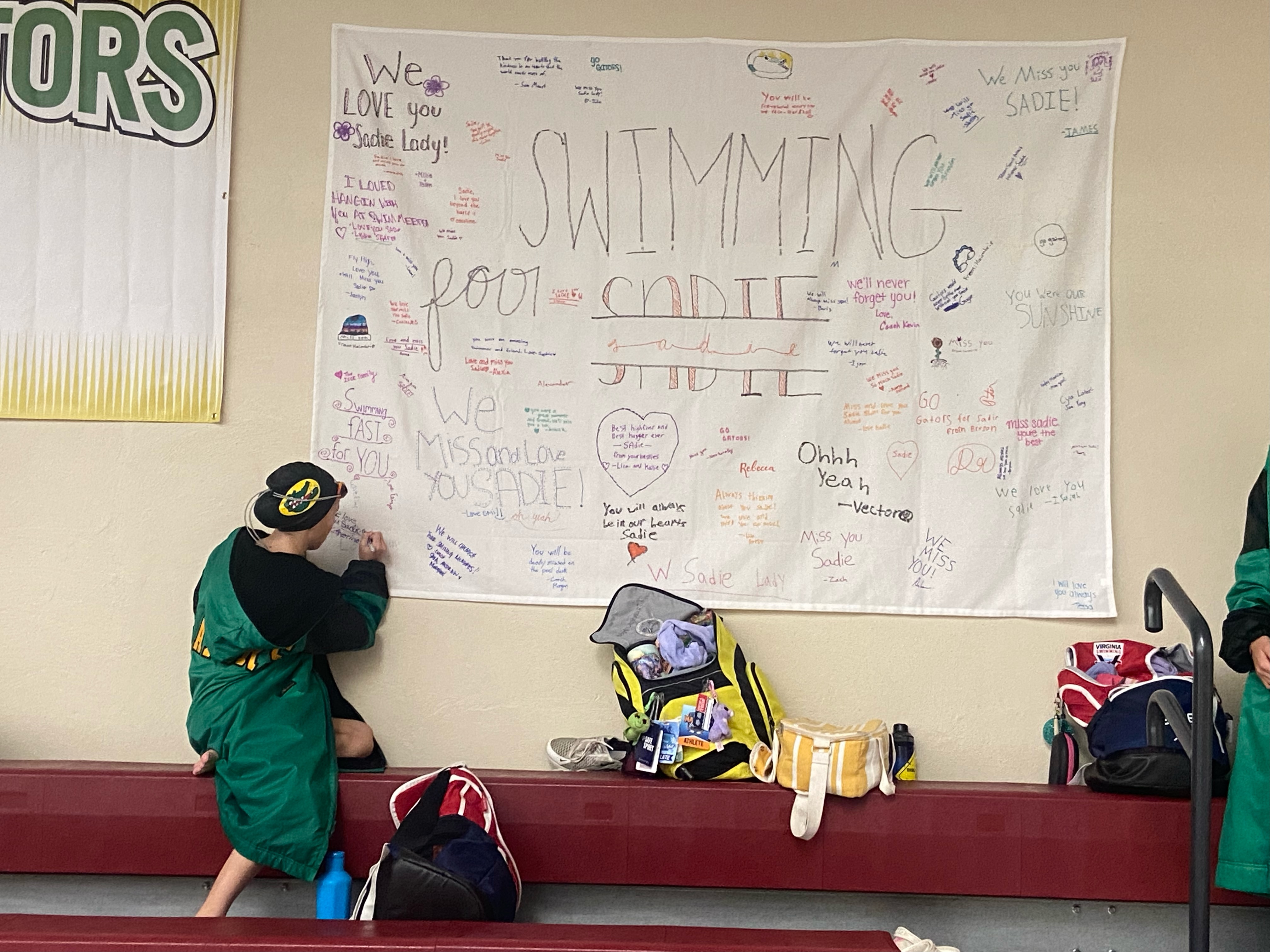 There was a lot of lavender on deck over the weekend, as well as a giant "Swimming for Sadie" banner the team worked on prior to the meet, in honor of our fellow friend and teammate, Sadie Deeble.