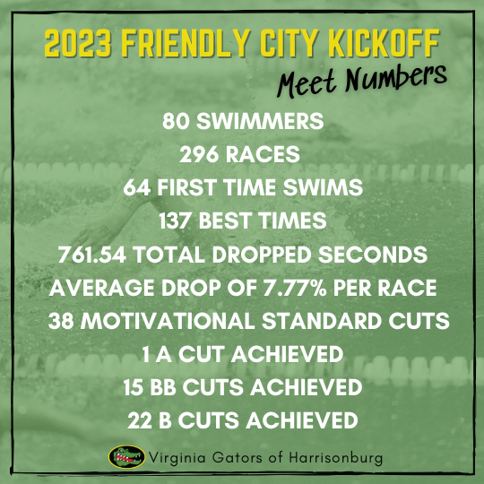 After a lot of reshuffling, we managed to have our first meet and start the 2023-24 short course season at the Friendly City Kickoff meet at Westover. We had a great turnout, despite the weather issues, from SMAC, Roanoke Gators, Storm, and our team. Thank you so much to the families that stepped in last minute to volunteer and helped the meet run smoothly!