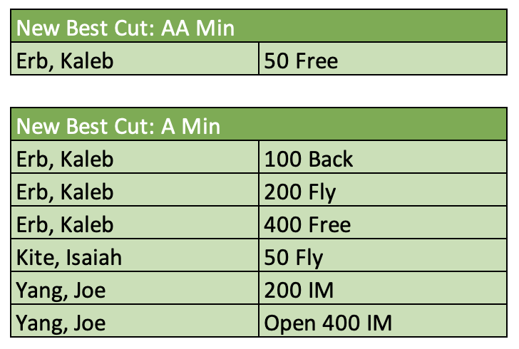 There were seven new motivational cuts achieved from A through AA. Those swims and swimmers are called out below. Great meet, everyone!! We hope you all had fun and were encouraged by your times over the course of the weekend and can't wait to see your progress over the remainder of the long course season. Keep up the good work!