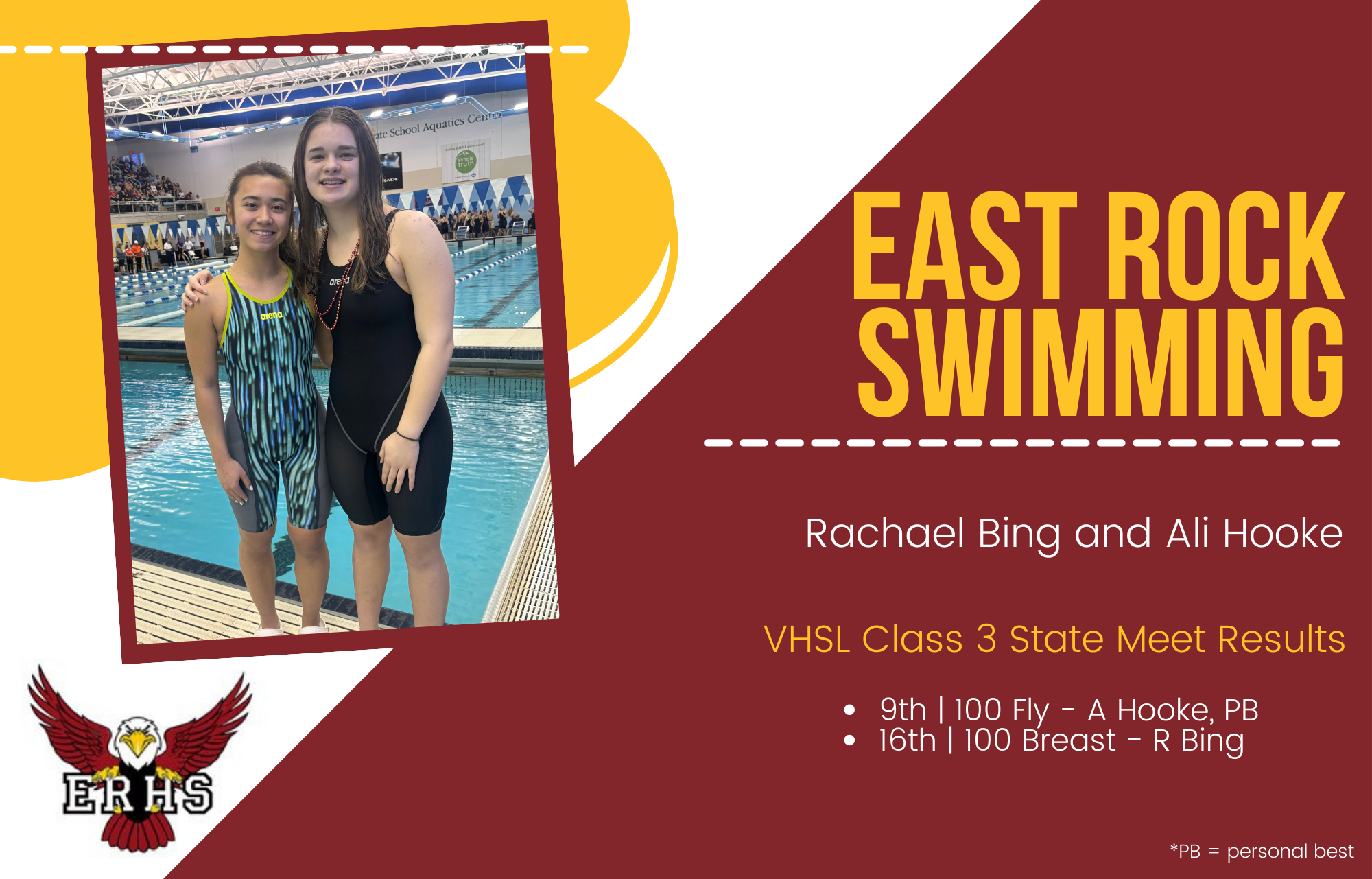 Rachael Bing and Ali Hooke represented East Rock High School swimming the 100 Fly (Hooke) and the 100 Breast (Bing) at the VHSL Class 3 State meet.